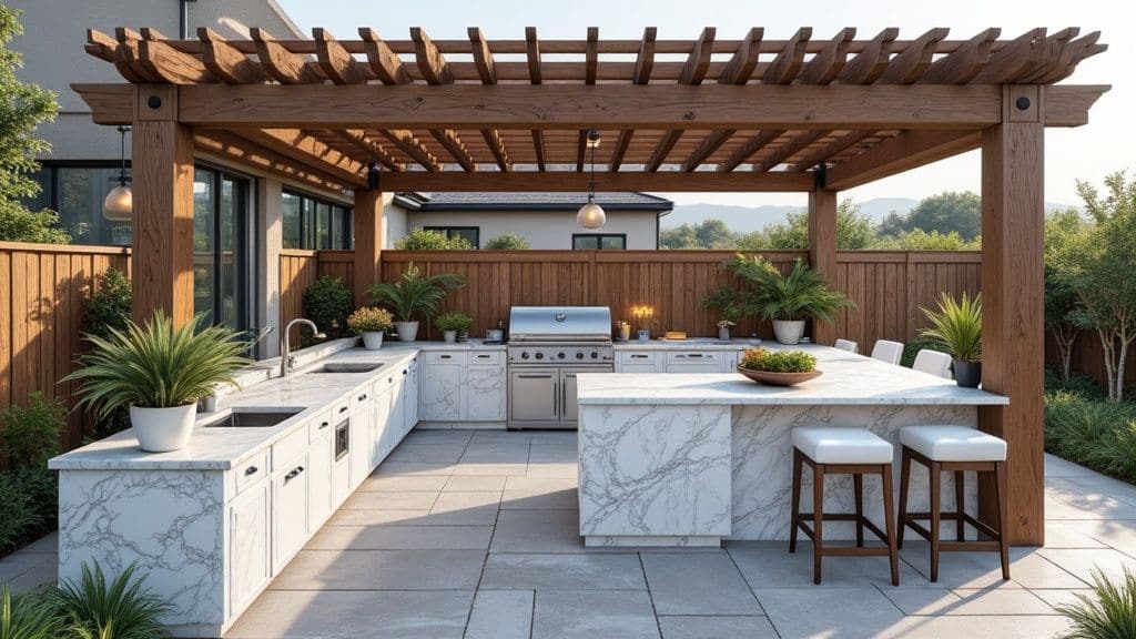 | Multi-Level Design with Bar Seating | High – complex design and construction | High – structural and material costs | Defined functional zones, social interaction | Large-scale outdoor kitchens focused on entertaining | Architectural interest, social facilitation |